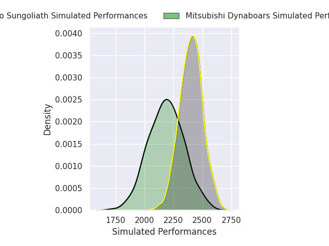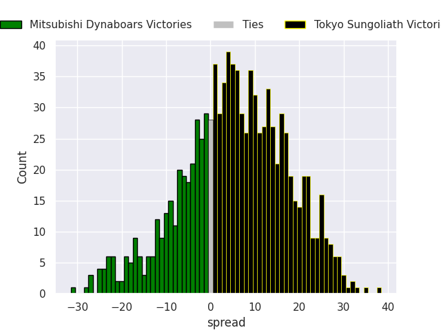 Each club has a rating and a rating deviation (similar to a Glicko rating), and expected performances can be generated. This allows for simulated matches and spreads like the ones below.