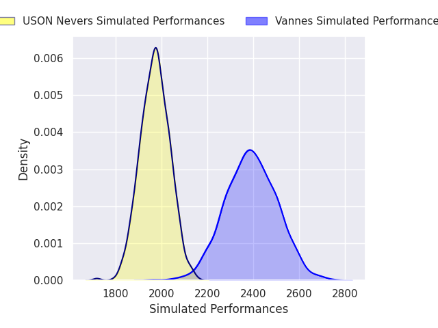 Each club has a rating and a rating deviation (similar to a Glicko rating), and expected performances can be generated. This allows for simulated matches and spreads like the ones below.