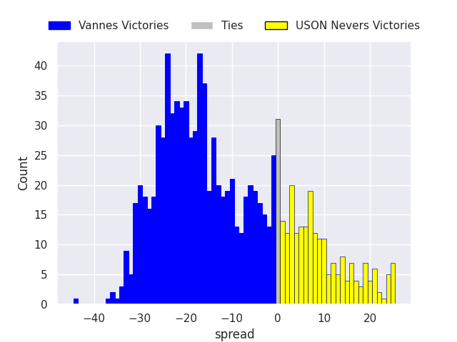 The first set of predictions treats a club as the smallest object, as the club develops its members, organizes a gameplan, and deploys its players as needed for each match. This club model is currently predicting Vannes to win by 11.29.