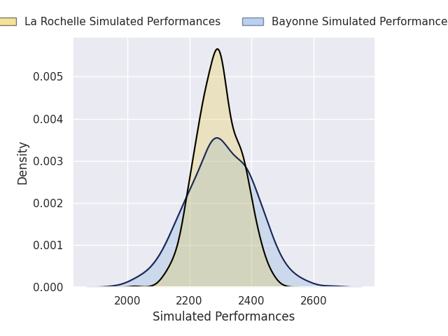 Each club has a rating and a rating deviation (similar to a Glicko rating), and expected performances can be generated. This allows for simulated matches and spreads like the ones below.