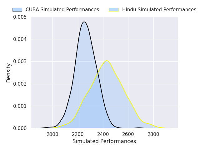 Each club has a rating and a rating deviation (similar to a Glicko rating), and expected performances can be generated. This allows for simulated matches and spreads like the ones below.