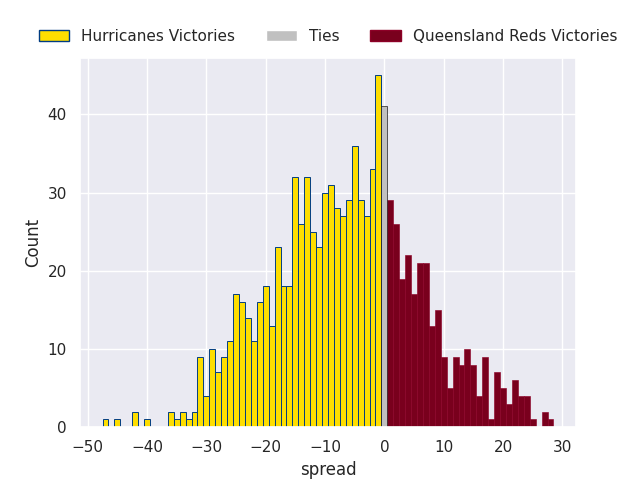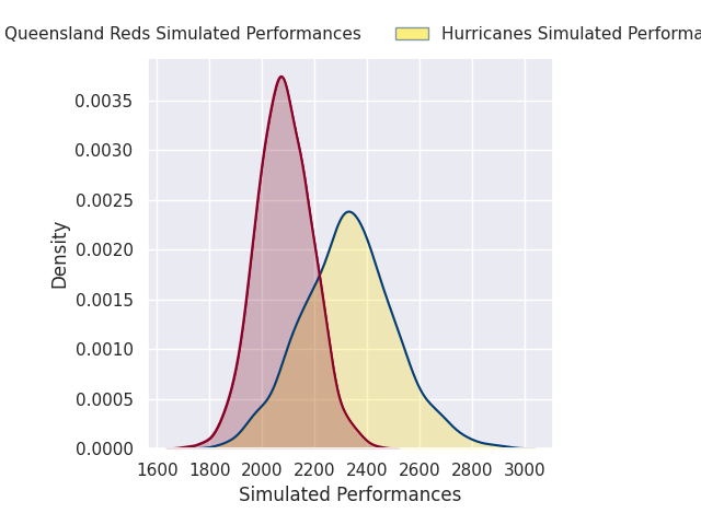 Each club has a rating and a rating deviation (similar to a Glicko rating), and expected performances can be generated. This allows for simulated matches and spreads like the ones below.