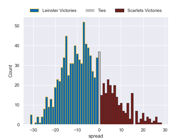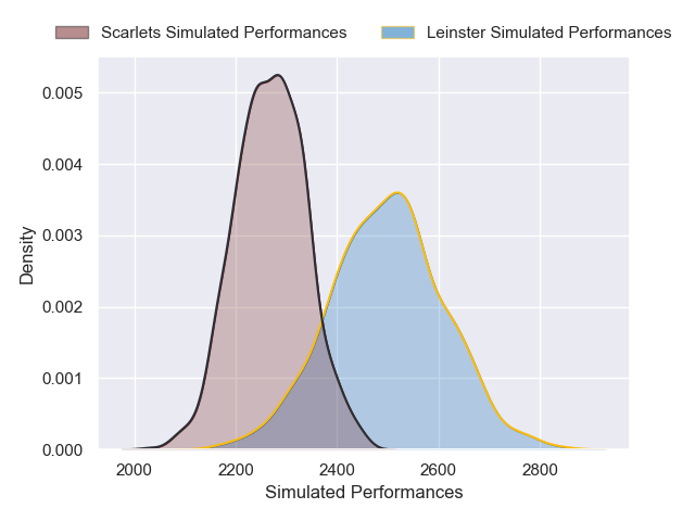 Each club has a rating and a rating deviation (similar to a Glicko rating), and expected performances can be generated. This allows for simulated matches and spreads like the ones below.