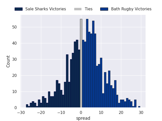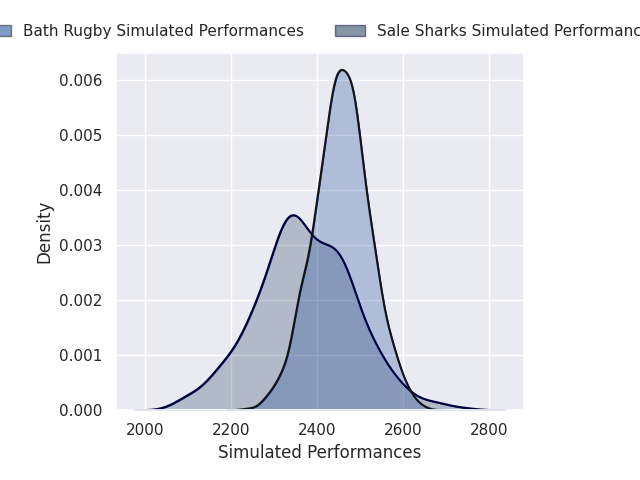 Each club has a rating and a rating deviation (similar to a Glicko rating), and expected performances can be generated. This allows for simulated matches and spreads like the ones below.