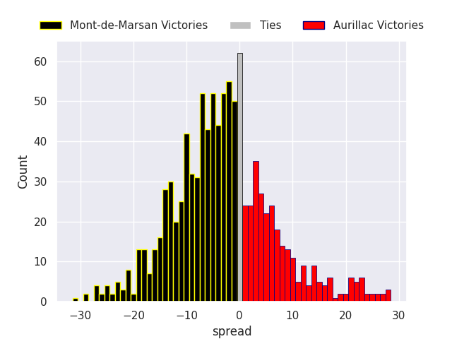 Each club has a rating and a rating deviation (similar to a Glicko rating), and expected performances can be generated. This allows for simulated matches and spreads like the ones below.