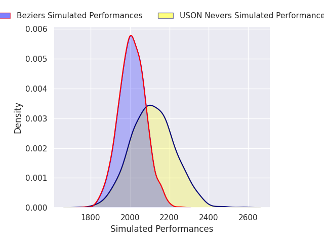 Each club has a rating and a rating deviation (similar to a Glicko rating), and expected performances can be generated. This allows for simulated matches and spreads like the ones below.