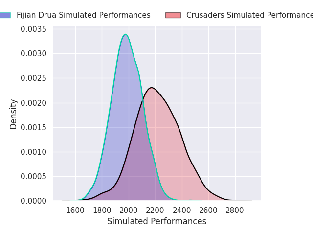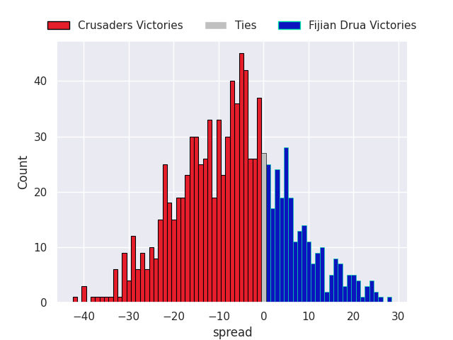 Each club has a rating and a rating deviation (similar to a Glicko rating), and expected performances can be generated. This allows for simulated matches and spreads like the ones below.
