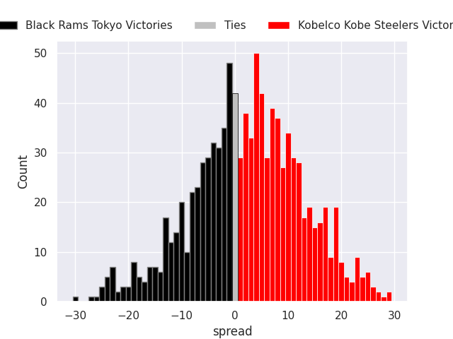 The first set of predictions treats a club as the smallest object, as the club develops its members, organizes a gameplan, and deploys its players as needed for each match. This club model is currently predicting Kobelco Kobe Steelers to win by 2.44.