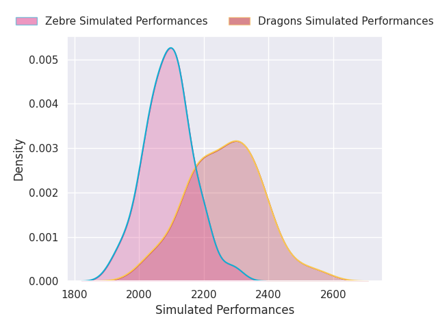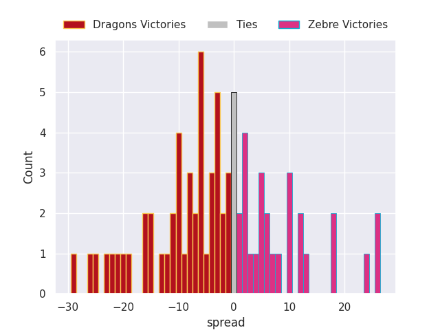 Each club has a rating and a rating deviation (similar to a Glicko rating), and expected performances can be generated. This allows for simulated matches and spreads like the ones below.