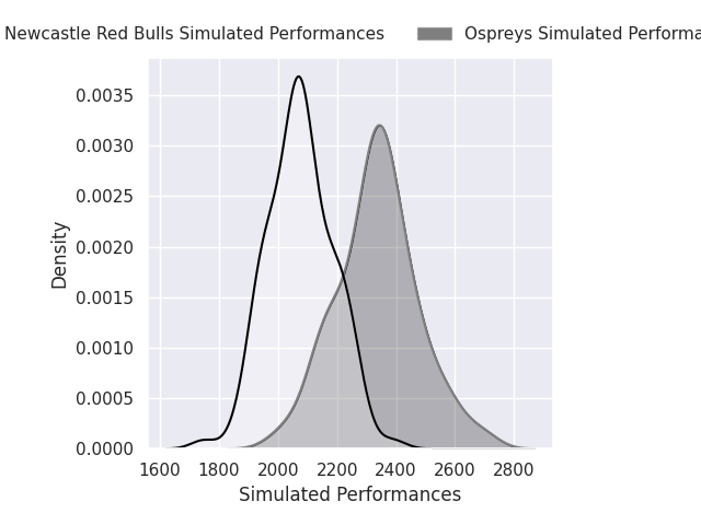Each club has a rating and a rating deviation (similar to a Glicko rating), and expected performances can be generated. This allows for simulated matches and spreads like the ones below.
