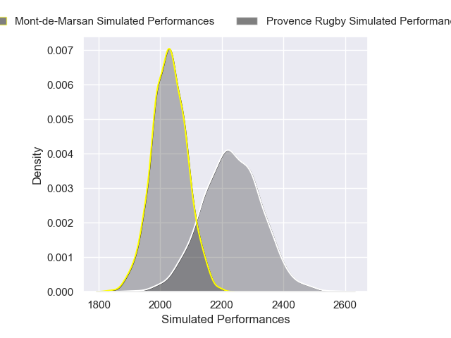The first set of predictions treats a club as the smallest object, as the club develops its members, organizes a gameplan, and deploys its players as needed for each match. This club model is currently predicting Provence Rugby to win by 5.65.