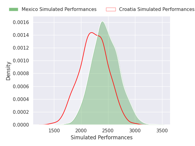 The first set of predictions treats a club as the smallest object, as the club develops its members, organizes a gameplan, and deploys its players as needed for each match. This club model is currently predicting Mexico to win by 10.88.