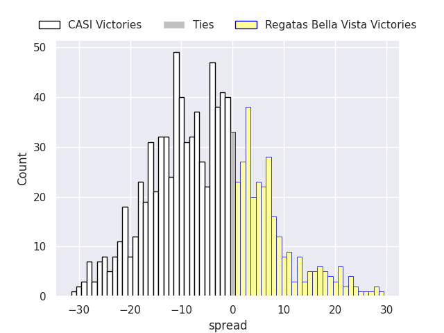 Each club has a rating and a rating deviation (similar to a Glicko rating), and expected performances can be generated. This allows for simulated matches and spreads like the ones below.