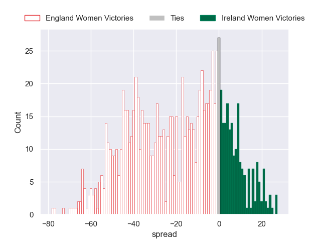 The first set of predictions treats a club as the smallest object, as the club develops its members, organizes a gameplan, and deploys its players as needed for each match. This club model is currently predicting England Women to win by 19.52.