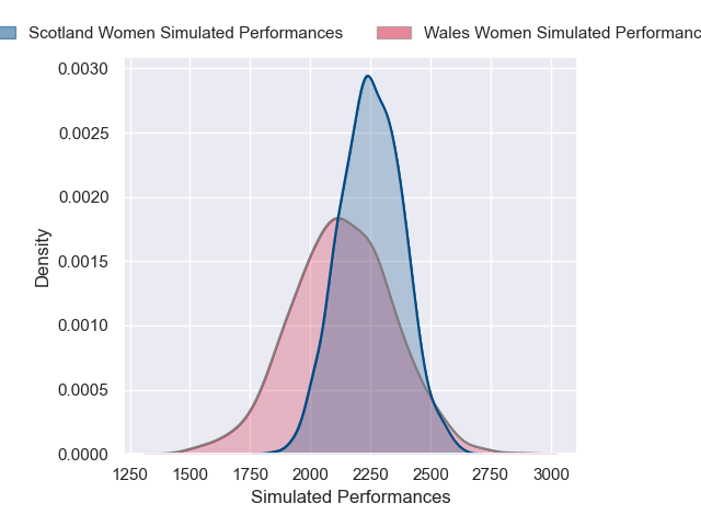 Each club has a rating and a rating deviation (similar to a Glicko rating), and expected performances can be generated. This allows for simulated matches and spreads like the ones below.