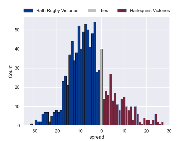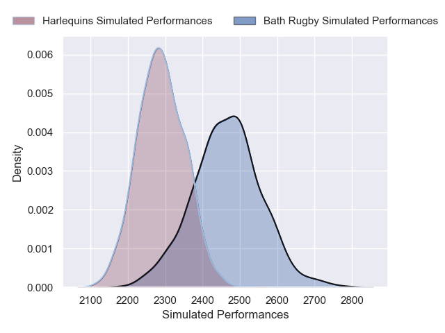 Each club has a rating and a rating deviation (similar to a Glicko rating), and expected performances can be generated. This allows for simulated matches and spreads like the ones below.