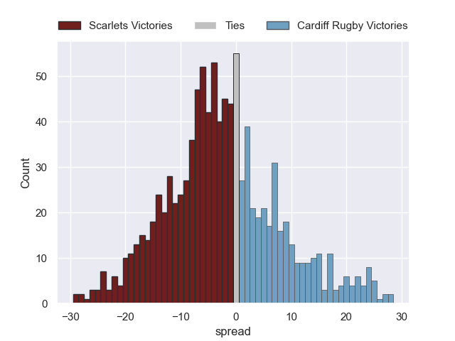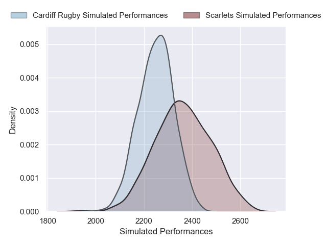 Each club has a rating and a rating deviation (similar to a Glicko rating), and expected performances can be generated. This allows for simulated matches and spreads like the ones below.