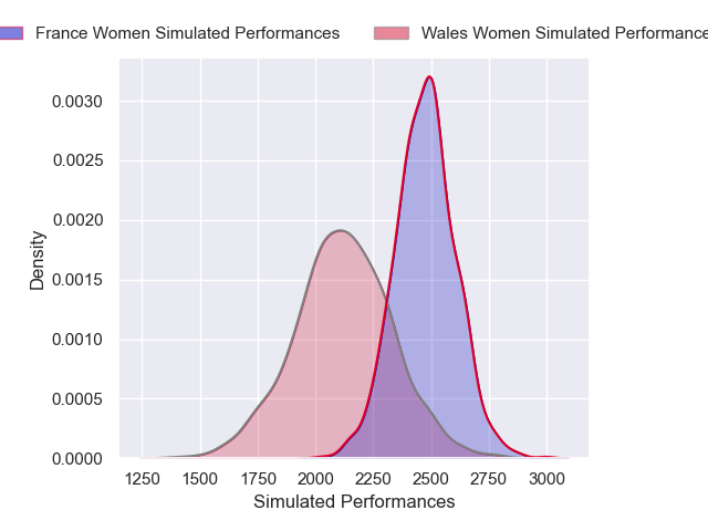 Each club has a rating and a rating deviation (similar to a Glicko rating), and expected performances can be generated. This allows for simulated matches and spreads like the ones below.