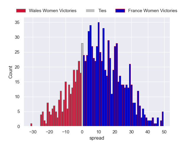 The first set of predictions treats a club as the smallest object, as the club develops its members, organizes a gameplan, and deploys its players as needed for each match. This club model is currently predicting France Women to win by 9.71.