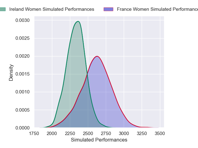 Each club has a rating and a rating deviation (similar to a Glicko rating), and expected performances can be generated. This allows for simulated matches and spreads like the ones below.