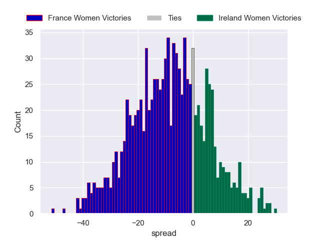 The first set of predictions treats a club as the smallest object, as the club develops its members, organizes a gameplan, and deploys its players as needed for each match. This club model is currently predicting France Women to win by 8.28.