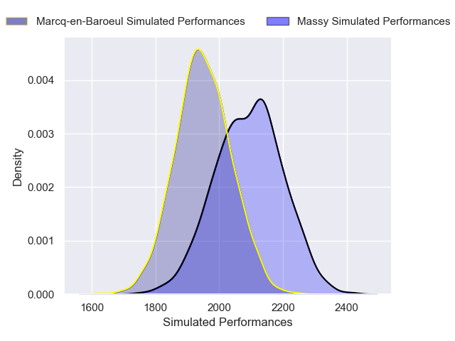 Each club has a rating and a rating deviation (similar to a Glicko rating), and expected performances can be generated. This allows for simulated matches and spreads like the ones below.