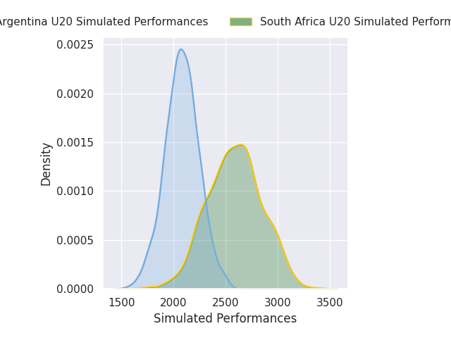 The first set of predictions treats a club as the smallest object, as the club develops its members, organizes a gameplan, and deploys its players as needed for each match. This club model is currently predicting South Africa U20 to win by 25.34.