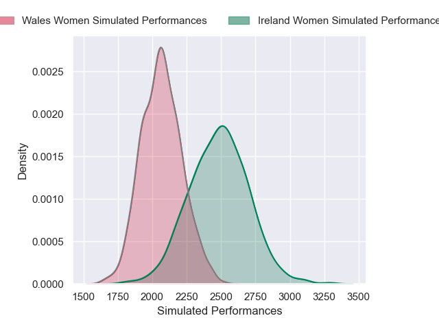 The first set of predictions treats a club as the smallest object, as the club develops its members, organizes a gameplan, and deploys its players as needed for each match. This club model is currently predicting Ireland Women to win by 10.66.