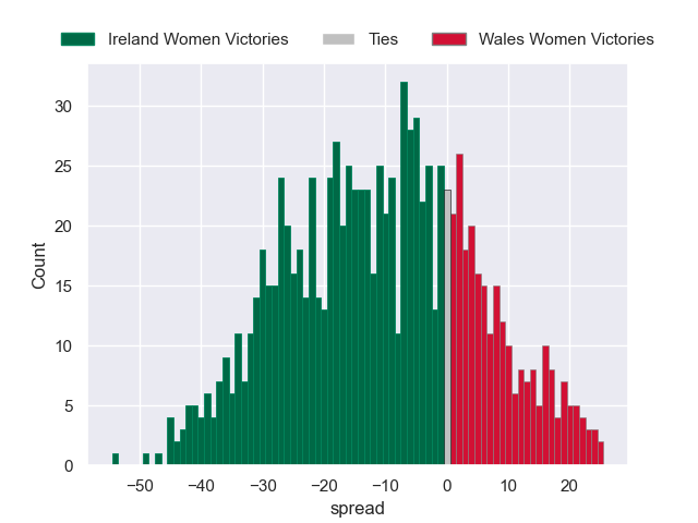 Each club has a rating and a rating deviation (similar to a Glicko rating), and expected performances can be generated. This allows for simulated matches and spreads like the ones below.