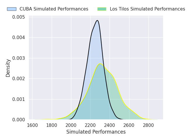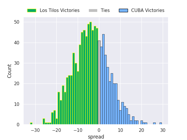 Each club has a rating and a rating deviation (similar to a Glicko rating), and expected performances can be generated. This allows for simulated matches and spreads like the ones below.