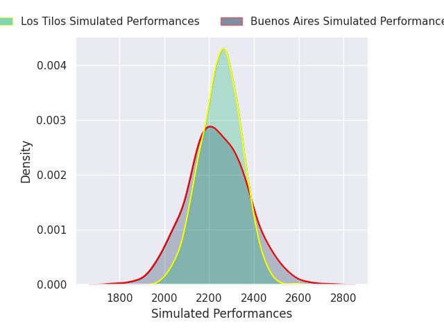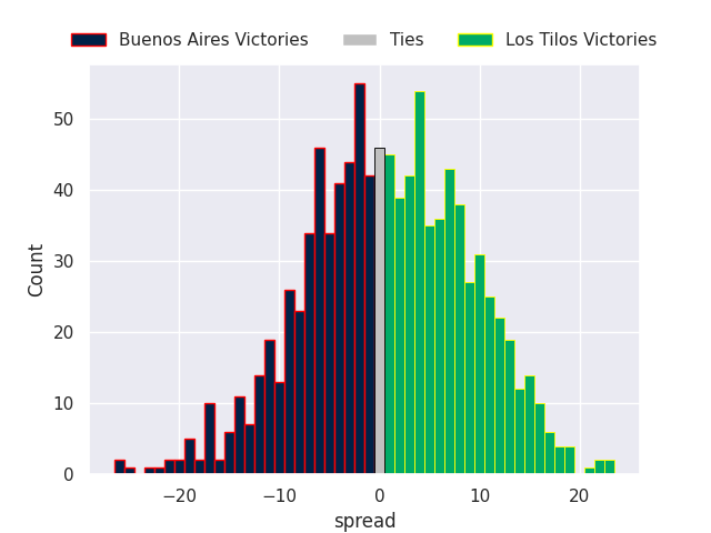 Each club has a rating and a rating deviation (similar to a Glicko rating), and expected performances can be generated. This allows for simulated matches and spreads like the ones below.