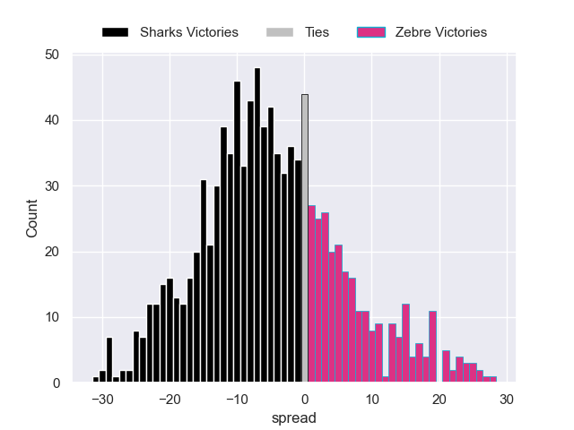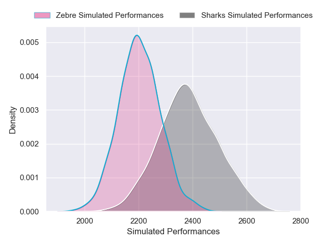 Each club has a rating and a rating deviation (similar to a Glicko rating), and expected performances can be generated. This allows for simulated matches and spreads like the ones below.