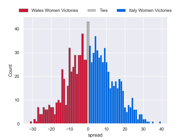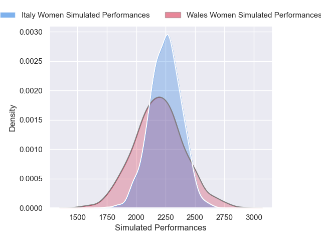 The first set of predictions treats a club as the smallest object, as the club develops its members, organizes a gameplan, and deploys its players as needed for each match. This club model is currently predicting Italy Women to win by 1.36.