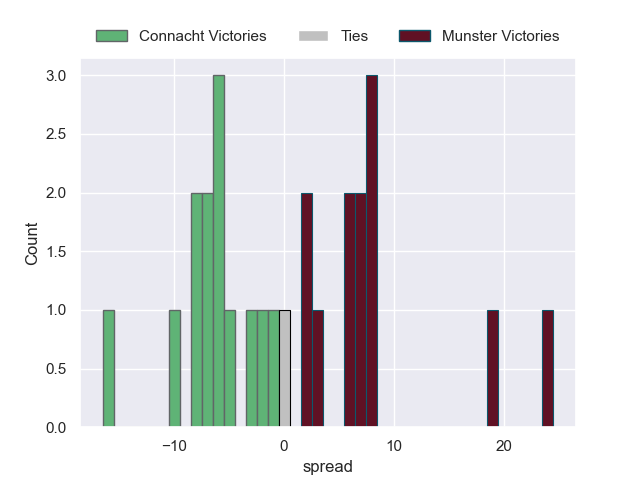 The first set of predictions treats a club as the smallest object, as the club develops its members, organizes a gameplan, and deploys its players as needed for each match. This club model is currently predicting Munster to win by 0.58.