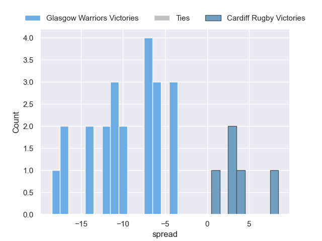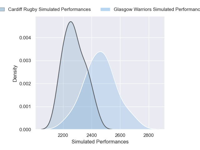 Each club has a rating and a rating deviation (similar to a Glicko rating), and expected performances can be generated. This allows for simulated matches and spreads like the ones below.