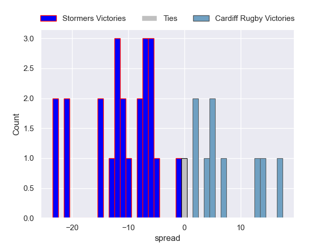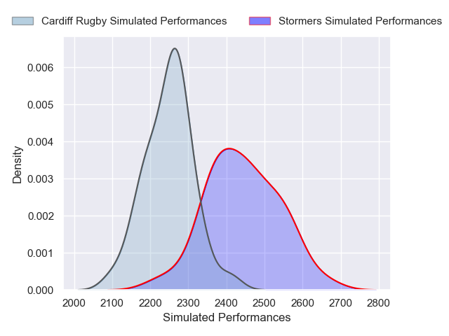 Each club has a rating and a rating deviation (similar to a Glicko rating), and expected performances can be generated. This allows for simulated matches and spreads like the ones below.