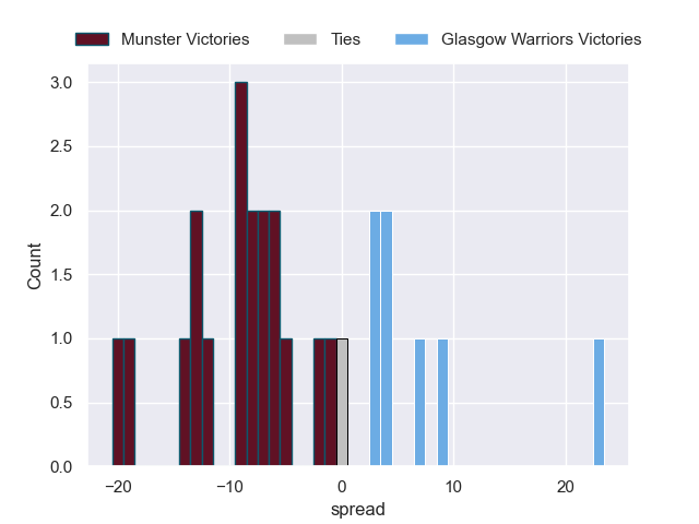 The first set of predictions treats a club as the smallest object, as the club develops its members, organizes a gameplan, and deploys its players as needed for each match. This club model is currently predicting Munster to win by 4.42.