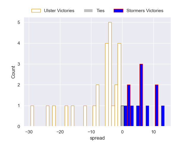 The first set of predictions treats a club as the smallest object, as the club develops its members, organizes a gameplan, and deploys its players as needed for each match. This club model is currently predicting Ulster to win by 3.24.