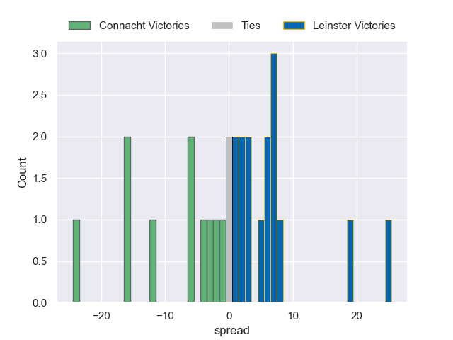 The first set of predictions treats a club as the smallest object, as the club develops its members, organizes a gameplan, and deploys its players as needed for each match. This club model is currently predicting Leinster to win by 0.44.