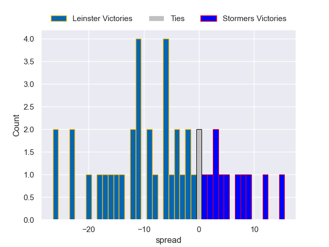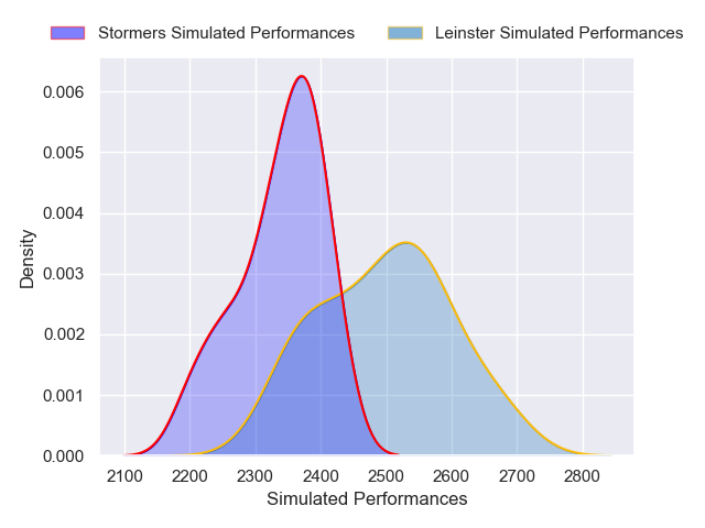 Each club has a rating and a rating deviation (similar to a Glicko rating), and expected performances can be generated. This allows for simulated matches and spreads like the ones below.