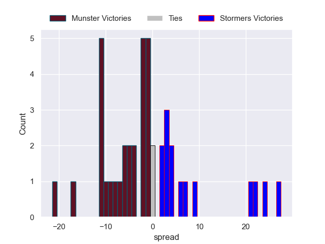 The first set of predictions treats a club as the smallest object, as the club develops its members, organizes a gameplan, and deploys its players as needed for each match. This club model is currently predicting Munster to win by 0.81.
