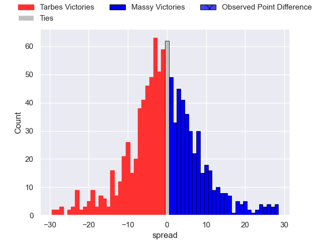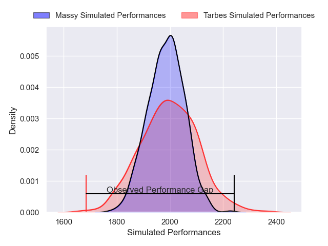 Now that the game has been played, lets see how the club predictions did. I predicted Tarbes to win by 0.65, and Massy won by 25.0. That’s an absolute error of 25.6 for the margin of victory, while my average absolute error has been 14.1 over the past six months. This prediction was more accurate than 15.2% of my recent predictions.