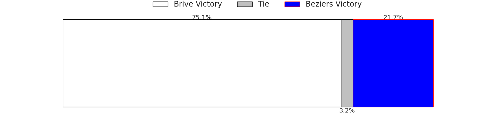 Now that the game has been played, lets see how the club predictions did. I predicted Brive to win by 6.26, and Brive won by 37.0. That’s an absolute error of 30.7 for the margin of victory, while my average absolute error has been 13.5 over the past six months. This prediction was more accurate than 9.2% of my recent predictions.