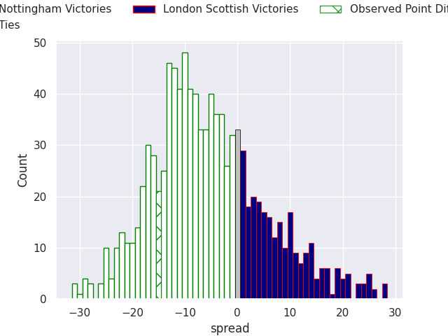 Now that the game has been played, lets see how the club predictions did. I predicted Nottingham to win by 5.44, and Nottingham won by 15.0. That’s an absolute error of 9.6 for the margin of victory, while my average absolute error has been 13.5 over the past six months. This prediction was more accurate than 50.4% of my recent predictions.