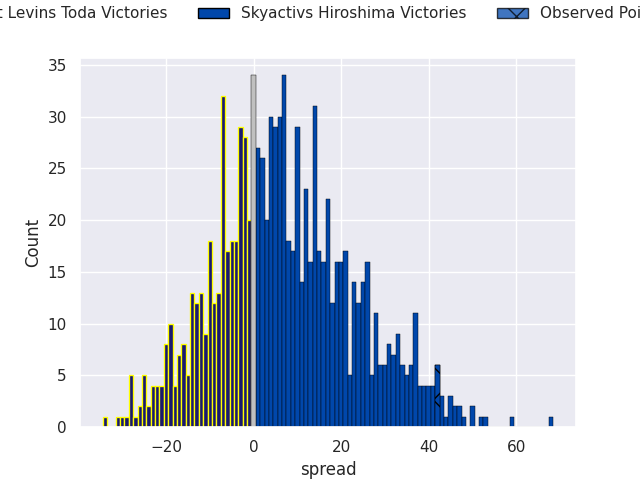 Now that the game has been played, lets see how the club predictions did. I predicted Skyactivs Hiroshima to win by 7.22, and Skyactivs Hiroshima won by 42.0. That’s an absolute error of 34.8 for the margin of victory, while my average absolute error has been 13.5 over the past six months. This prediction was more accurate than 6.3% of my recent predictions.