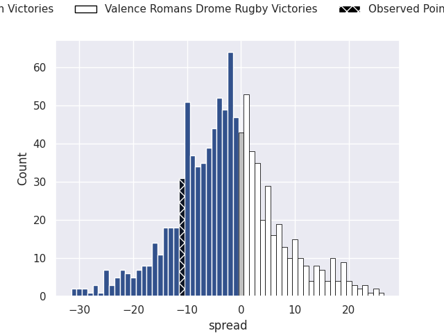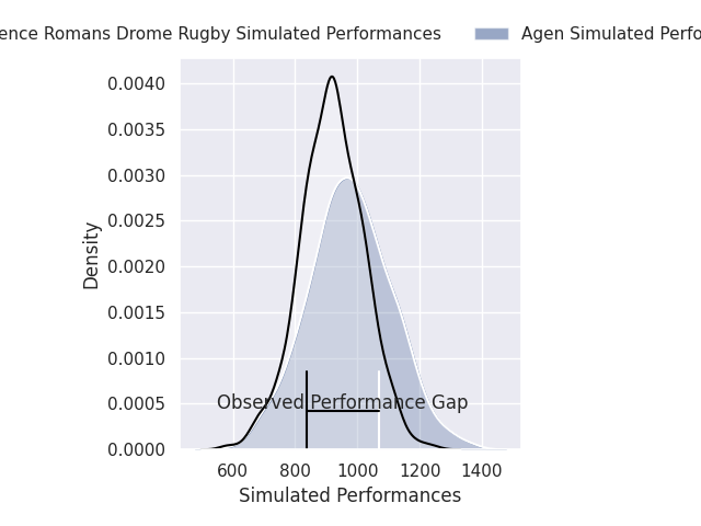 With the player model, I predicted Agen to win by 2.08, and Agen won by 11.0. That’s an absolute error of 8.9 for the margin of victory, while the average error as been 14.5 for the past six months. So this prediction was more accurate than 48.3% of my recent predictions.