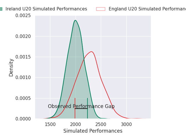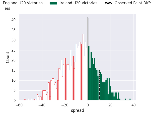 Now that the game has been played, lets see how the club predictions did. I predicted England U20 to win by 6.88, and Ireland U20 won by 10.0. That’s an absolute error of 16.9 for the margin of victory, while my average absolute error has been 13.5 over the past six months. This prediction was more accurate than 28.8% of my recent predictions.