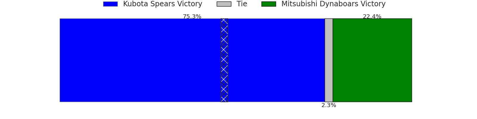 Now that the game has been played, lets see how the club predictions did. I predicted Kubota Spears to win by 12.34, and Kubota Spears won by 16.0. That’s an absolute error of 3.7 for the margin of victory, while my average absolute error has been 13.5 over the past six months. This prediction was more accurate than 81.7% of my recent predictions.