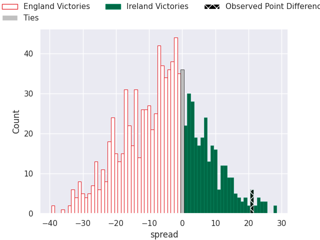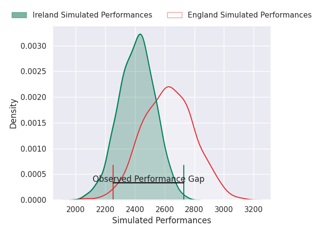 With the player model, I predicted England to win by 3.21, and Ireland won by 21.0. That’s an absolute error of 24.2 for the margin of victory, while the average error as been 14.5 for the past six months. So this prediction was more accurate than 17.1% of my recent predictions.