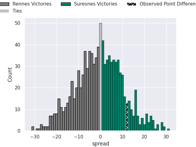 With the player model, I predicted Rennes to win by 0.85, and Suresnes won by 12.0. That’s an absolute error of 12.8 for the margin of victory, while the average error as been 14.5 for the past six months. So this prediction was more accurate than 37.8% of my recent predictions.